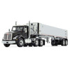 This authentic Kenworth® T880 diecast metal replica model comes paired with an East® Genesis® End Dump Trailer and features an opening hood with authentic engine detail, opening doors accurately detailed cab interior, poseable front wheels, pivoting fifth-wheel for trailer attachment, tilting dump body with opening tailgate, detailed chassis and undercarriage. This quality replica is decorated with a black and chrome paint scheme. This 1/50 scale replica measures approximately 14" long, 2.5" wide, and 2.75" high.