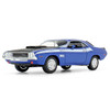 This authentic 1970 Dodge® Challenger diecast metal replica model features an opening doors, accurately detailed interior, poseable front wheels and detailed undercarriage. This quality replica is decorated with a blue paint scheme. This 1/24 scale replica measures approximately 7.5" long, 3" wide, and 2" high.
