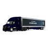 This authentic Freightliner® Fifth Generation Cascadia® Raised Roof Sleeper diecast metal replica model comes paired with a 53' Utility® Trailer with Skirts and features an opening hood with authentic engine detail, accurately detailed cab interior, poseable front wheels, pivoting fifth-wheel for trailer attachment, working trailer landing gear, and detailed chassis and undercarriage. This quality replica is decorated with a Freightliner midnight paint scheme. This 1/64 scale replica measures approximately 15" long, 2" wide, and 2.5" high.