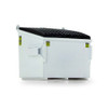 This authentic trash bin diecast metal replica features a split-top opening lid. This 1/34 scale trash bin is compatible with 1/34 scale Mack TerraPro Front End Loaders. This quality replica is decorated with a white paint scheme. This 1/34 scale replica measures approximately 2" wide, 1.5" deep and 1.75" high.