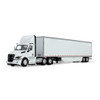 This authentic Freightliner® Fifth Generation Cascadia® Day Cab diecast metal replica model comes paired with a 53' Utility® Trailer with Skirts and features an opening hood with authentic engine detail, accurately detailed cab interior, poseable front wheels, pivoting fifth-wheel for trailer attachment, working trailer landing gear, and detailed chassis and undercarriage. This quality replica is decorated with a white paint scheme. This 1/64 scale replica measures approximately 14.5" long, 2" wide, and 2.5" high.